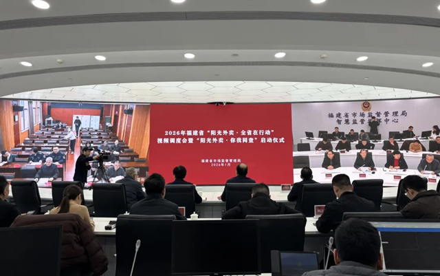 为认真贯彻福建省纪委监委关于开展群众身边不正之风和腐败问题集中整治部署要求,扎实推进重大民生实事项目“治理网络餐饮食品安全问题”落地见效,1月29日,省市场监管局组织召开2026年福建省“阳光外卖·全省在行动”视频调度会暨“阳光外卖·你我同查”启动仪式。