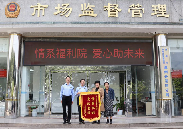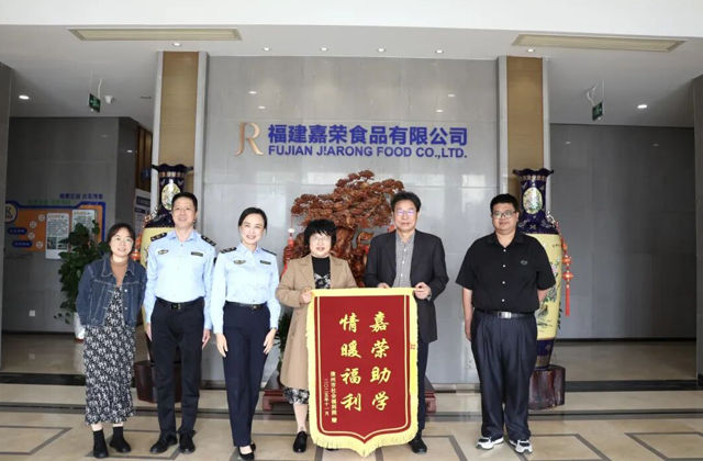 近日,漳州市社会福利院一行到漳州开发区市场监管分局与福建嘉荣食品有限公司,分别为这两家单位送上印有“情系福利 爱助童学”和“嘉荣助学 情暖福利”的鲜红锦旗,以此表达对市场监管分局搭建爱心桥梁以及嘉荣食品慷慨助学善举的诚挚谢意。
