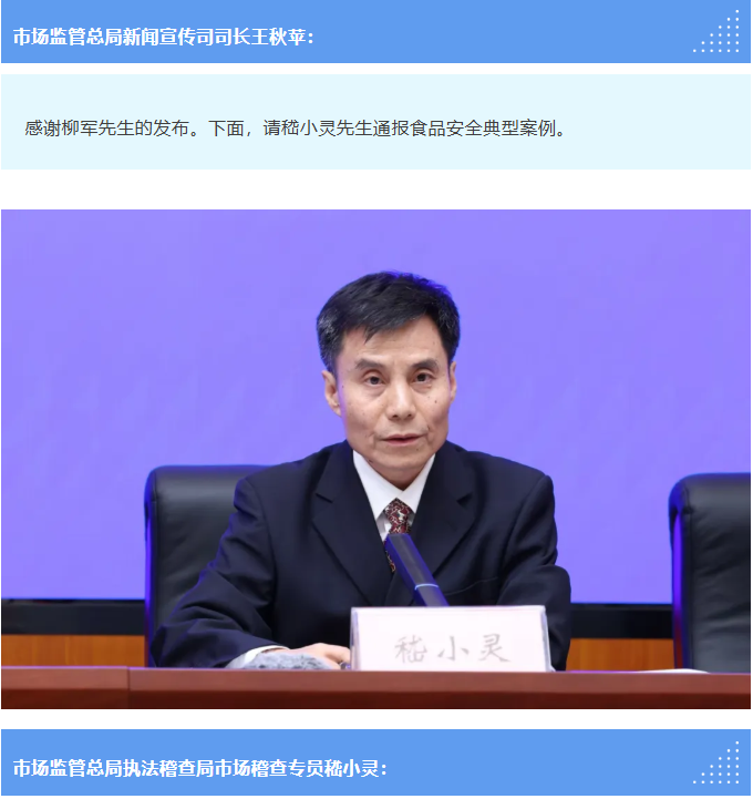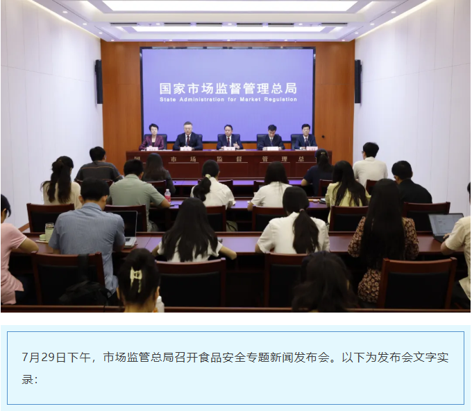 民以食为天,食以安为先。为贯彻落实党中央、国务院关于加强食品安全工作的决策部署,进一步保障公众知情权、提升监管透明度、推动构建食品安全社会共治格局,市场监管总局决定从本月起,定期举办食品安全专题新闻发布会,及时向社会通报食品安全监管工作动态,发布食品安全典型案例。