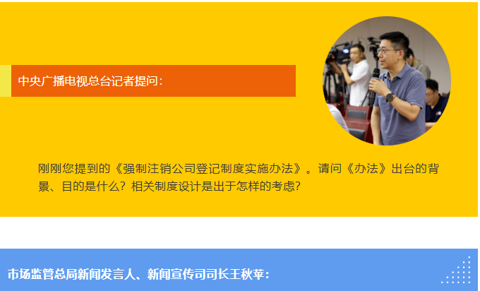 我们刚出台的《办法》,就是把法律要求转化为可操作、可执行、能落地的实践指南,旨在加快市场新陈代谢,清理名存实亡的“僵尸企业”,优化市场生态,护航公平竞争。