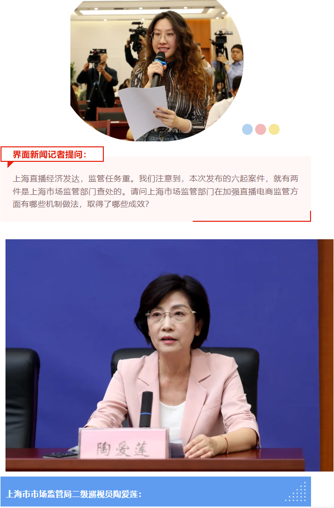 谢谢主持人。各位记者朋友们,大家上午好!很高兴参加今天的新闻发布会。今天,市场监管总局集中发布上海德馨医院有限公司虚假宣传案等一批直播电商典型案例,刚才大家也拿到了相关案件材料。下面,我向大家简要介绍一下近期市场监管部门在直播电商监管方面的总体工作情况。