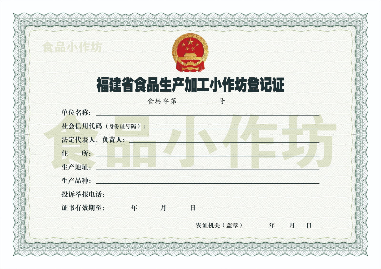 (二)食品小作坊登记证;